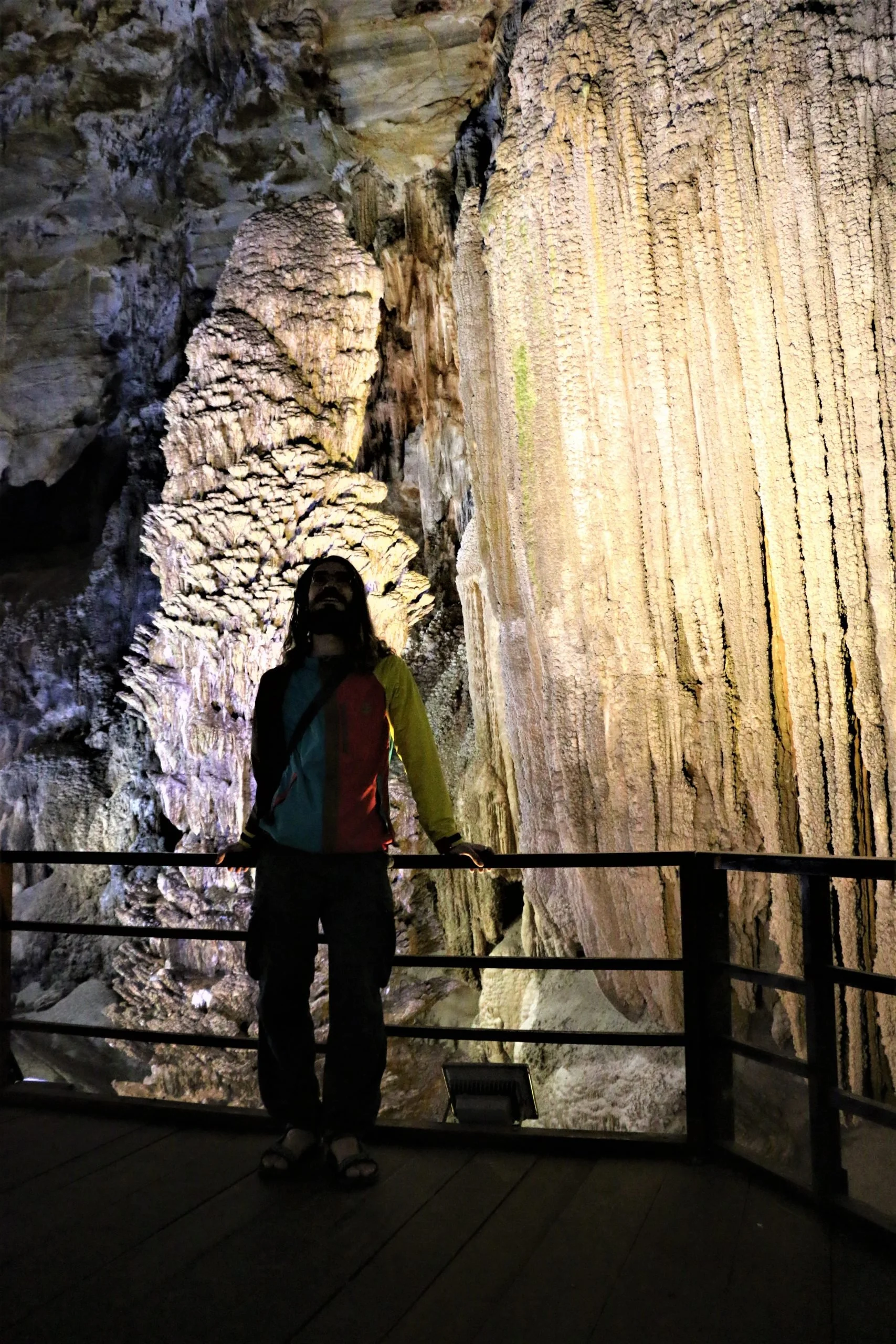 Superato l’ultimo tratto di scalini piuttosto ripido ecco che arriviamo alle porte del paradiso. Scendiamo piano piano il primo ripido tratto in discesa nella grotta e mi accorgo che le persone che incrocio, che stanno risalendo, sono parecchio affannate nonostante la giovane età. Si scende di circa 50 metri di dislivello ed incomincia una passerella in legno che permette di ammirare le spettacolari stalattiti e stalagmiti formatesi nel tempo. Uno spettacolo illuminato in maniera appropriata che lascia ammaliati, a bocca aperta, un susseguirsi di opere d’arte di madre natura. Un paradiso sotterraneo che non mi aspettavo, messo piede nella grotta si è immediatamente trasportati in un’altra dimensione. Lascio che siano le immagini a parlare e per descrivere meglio l’esperienza vi regalo una poesia, sempre il modo migliore per comunicare ciò che si sente, nel cuore.